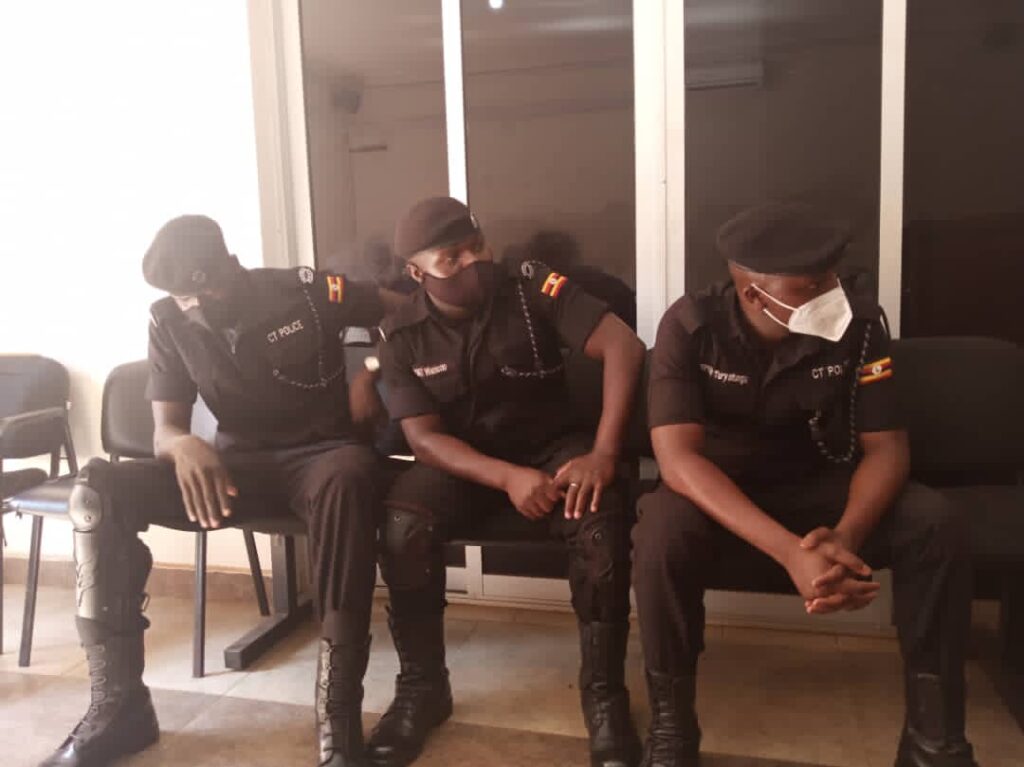 PC Richard Godfrey Anywar, PC Titus Wamono ne PC Edward Turyatunga bebatwaliddwa mu Kkooti evunaana abali b’enguzi n’abakenuzi eya Anti-Corruption Court wamu ne mukama waabwe Ssentebe w’akakiiko ka Uganda Land Commission Beatrice Byenkya Nyakaisiki.