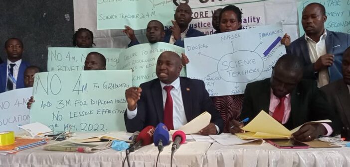 Abasomesa ba Ssaayansi abeegattira mu kibiina ki Uganda Professional Science Teachers Union (UPSTU) balabudde nti singa tebaweebwa nsimbi zaabwe obuwumbi 110 ezaabasuubizibwa bakuyimiriza emirimu. Bawadde nsalessale wa nga 9 omwezi ogujja May 2022.