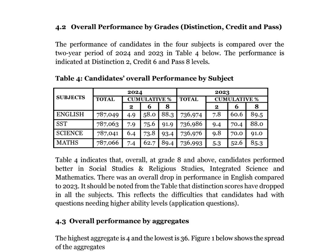 Abayizi abasinga abatuula ebigezo by’ekibiina ekyomusanvu omwaka oguwedde bayitidde mu ddaala lyakubiri. Bwogerageranya engeri abayizi gyebayiseemu omwaka 2024 ne 2023, omwaka gwa 2024 abayizi bakoledde ddala bulungi okusinga omwaka gwa 2023.