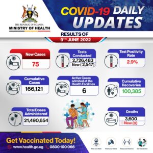 Abantu abalala 75 bazuuliddwa ne COVID-19