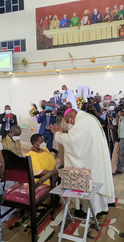 Ssaabaminsita Rt Hon Robinah Nabbanja ne nampala wa Gavumenti Hon. Thomas Tayebwa nga bafuna emikisa okuva ewa Bishop wa Kabale Diocese Rt Rev Callist Rubaramira bwebadde ku mukolo gwokusonderako ensimbi ku Immaculate Heart Girls S.S.S, Nyakibale mu Disitulikiti y’e Rukungiri.