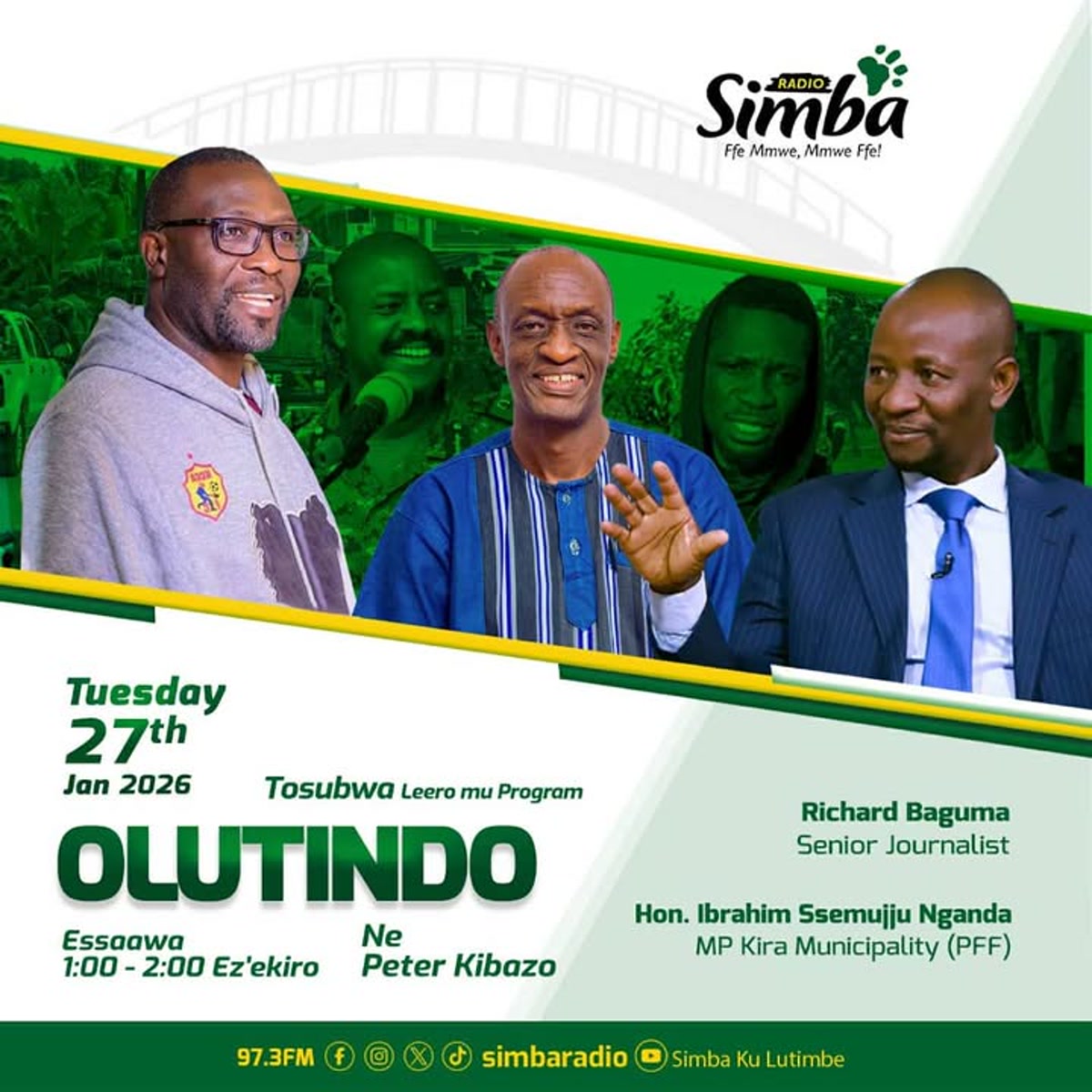 Olunaku olwaleero mu Program Olutindo ne Peter Kibazo tukuleetedde Richard Baguma ne Hon. Ibrahim Ssemujju Nganda. Tobasubwa