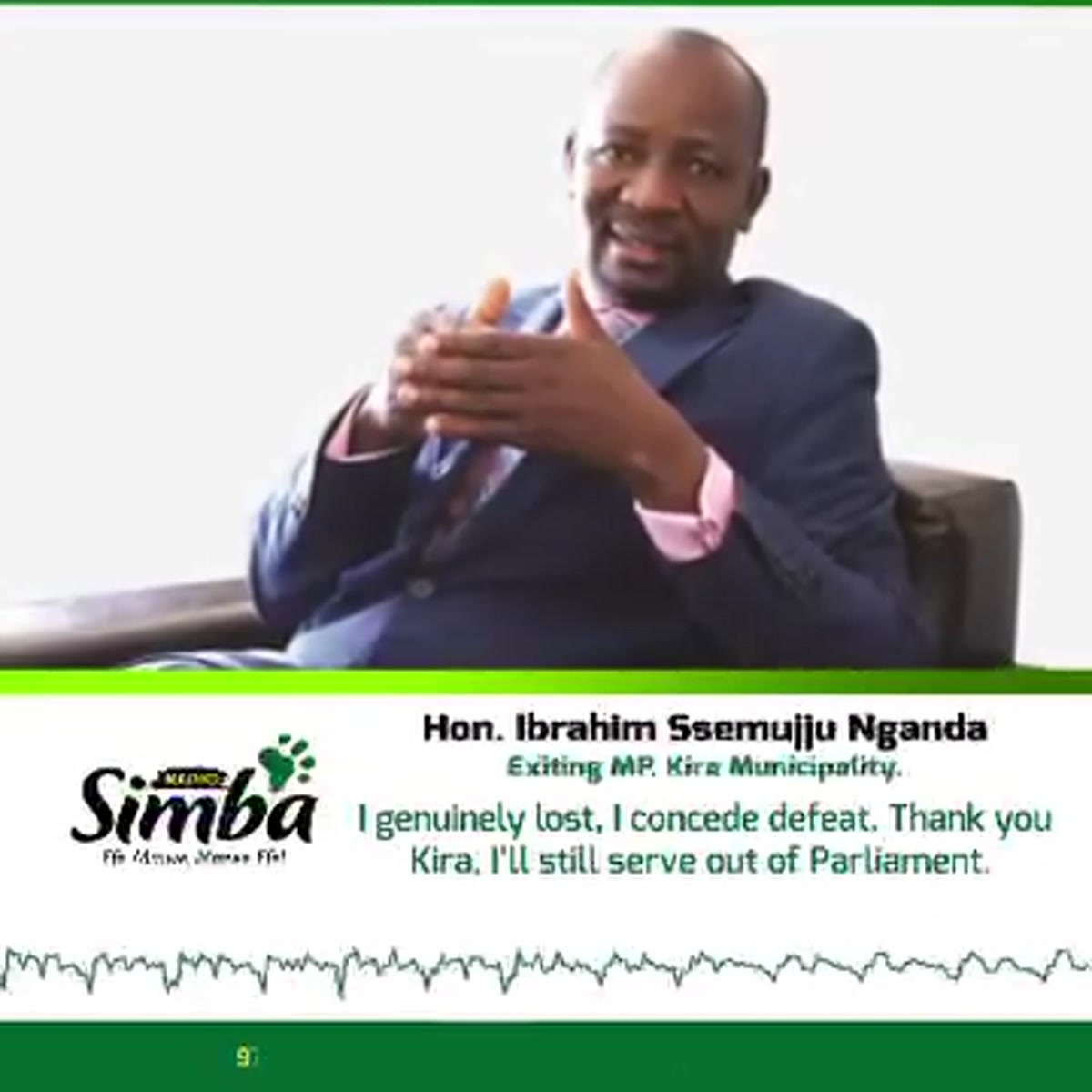 Omubaka wa Kira Municipality Hon. Ibrahim Ssemujju Nganda avuddeyo nakiriza nti yawanguddwa Munnakibiina ki National Unity Platform ku kifo ky’Omubaka owa Kira Municipality Munnamateeka George Musisi. Ssemujju yebazizza abantu b’e Kira olwokumwesiga okumala emyaka 15 nga bamulonda.
