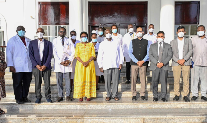 Pulezidenti Yoweri Kaguta Museveni yasisinkanye abasawo okuva mu Ddwaliro e Mulago ne banaabwe okuva ebweru w’eggwanga abasobodde okukyuusa ensigo yomuntu okugiteeka mu mulala nga gwemulundi ogwasoose mu Uganda.