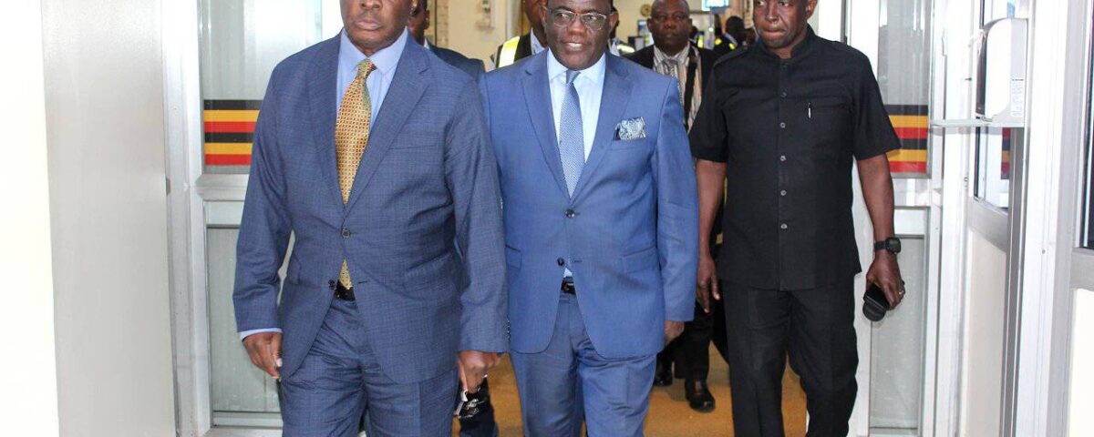 Ku kisaawe Entebbe ayaniriziddwa Omumyuka Asooka owa Katikkiro Owek. Prof Twaha Kaawaase Kigongo n’Abakungu abalala.